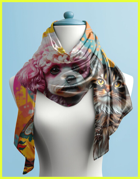 Das Design? Ein verspielter Mix aus Hunde- und Katzenmotiven, liebevoll illustriert und farblich abgestimmt. Nicht kitschig, sondern charmant und modern. Ideal für alle, die Mode mit einem Augenzwinkern tragen und dabei nicht auf Qualität verzichten wollen. Auch als Geschenk macht das Tuch eine gute Figur. Ein Statement-Piece mit Persönlichkeit – ideal für Tierliebhaber, Modefans oder einfach für Menschen, die das Besondere schätzen.